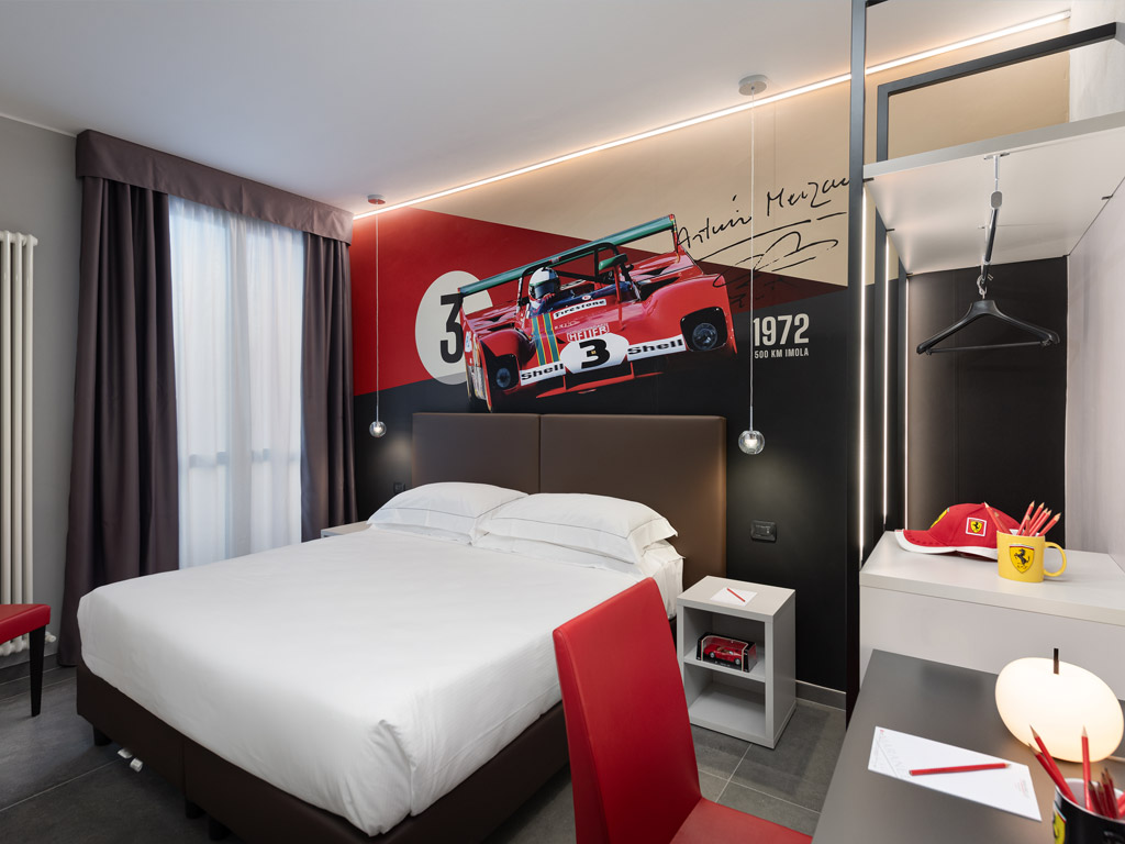 Recentemente rinnovate, ricordano indimenticabili miti delle monoposto Ferrari: da Scheckter a Schumacher, da Lauda a Raikkonen. I dettagli di design – come l’illuminazione firmata Kundalini – rendono ogni camera accogliente ed esclusiva.